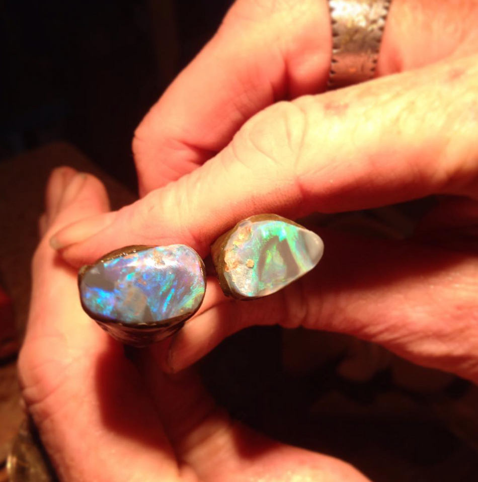 Solid White Opal from Mintabie, SA Opal size is 27mm high by 7mm wide by 4mm thick. It has a beautiful combination of red, orange,...